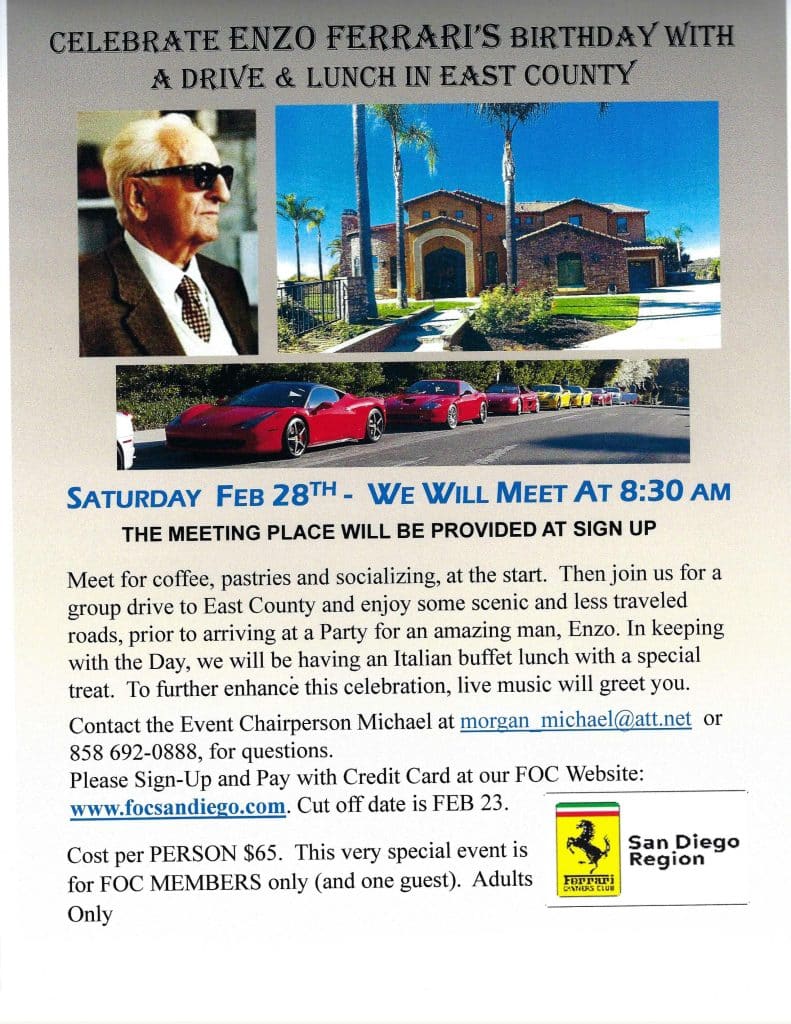 $65.00Happy New Year! Please join the FOC in an updated Enzo Birthday celebration! Refer to the event flyer below for additional information.